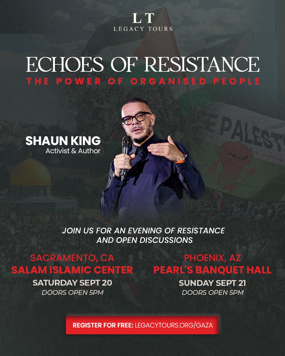 Hailed by Time Magazine as “One of the 25 most important people in the world on the Internet,” Shaun King is one of the most followed activists and journalists in the world. Having been a civil rights and human rights leader for nearly 30 years, Shaun has dedicated his entire life to fighting against injustice and oppression – no matter where it is – if it’s fighting against police brutality in the United States or fighting against the horrific genocide and Apartheid of the Palestinian people.